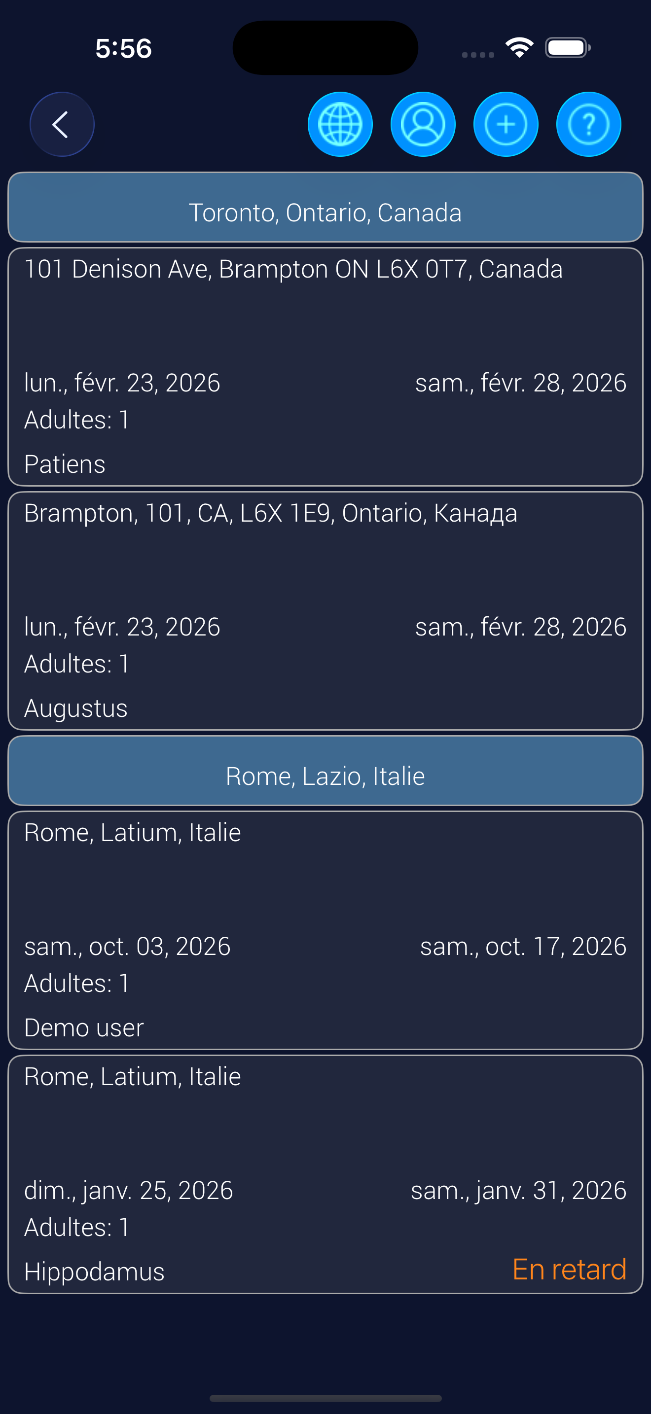 Si vous modifiez un paramètre de requête (pas un filtre ou un tri) - par exemple, Rome au lieu de Brampton, ou changez les dates, ou le nombre de voyageurs, enot66 créera une nouvelle requête, qui apparaîtra également dans la liste.