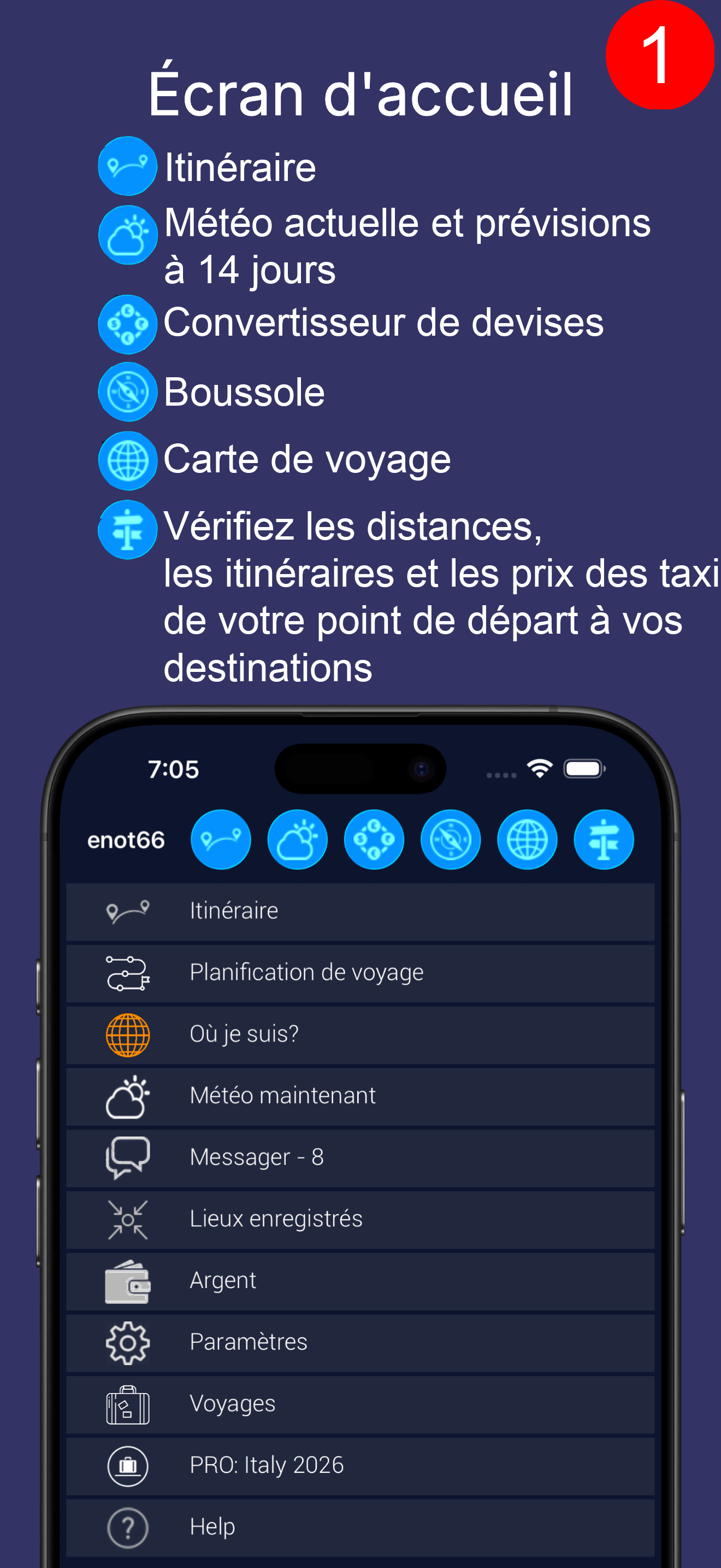 Le mode de fonctionnement PRO de l'application ajoute la possibilité de planifier votre voyage.