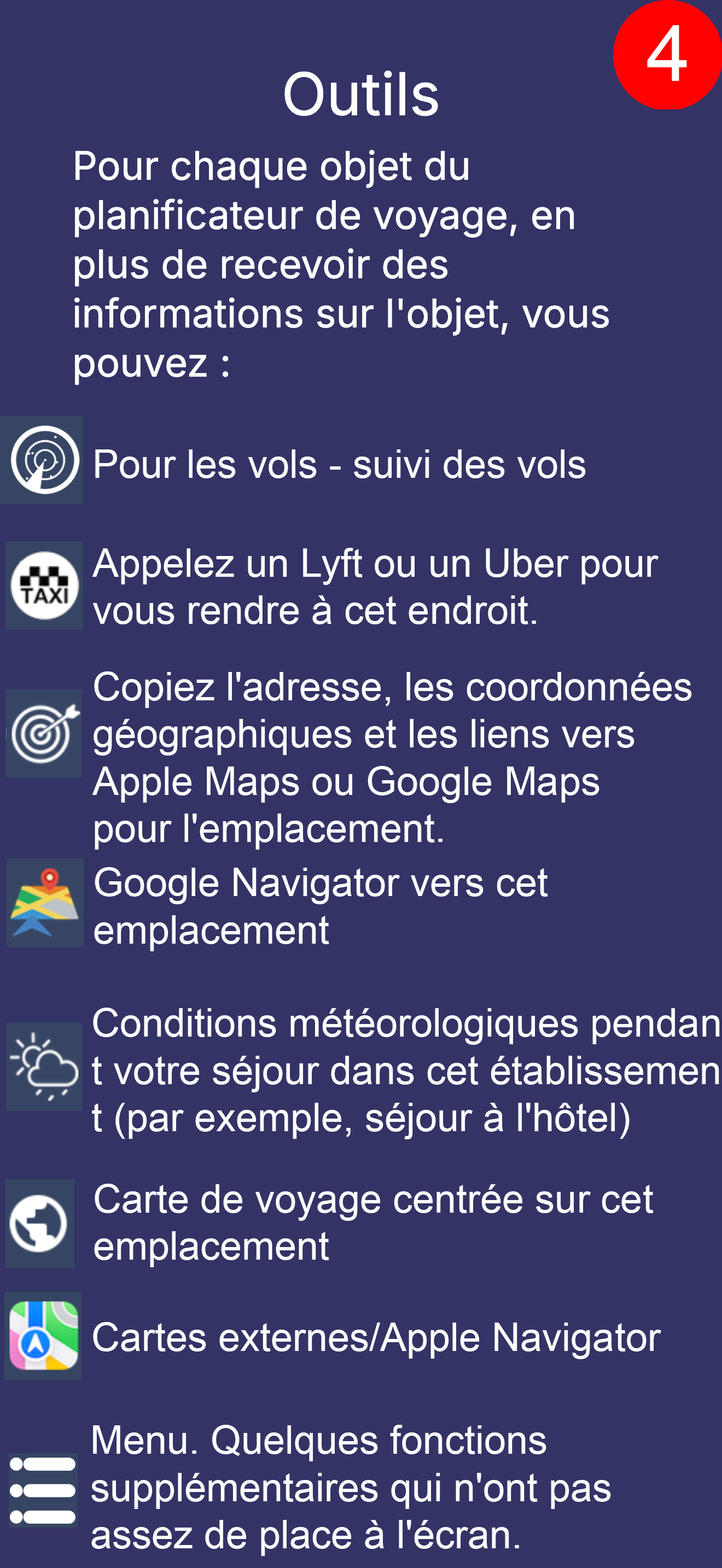 Ce n'est que l'écran de consultation du plan de voyage, ce qui ne représente qu'une petite partie des possibilités de l'application.