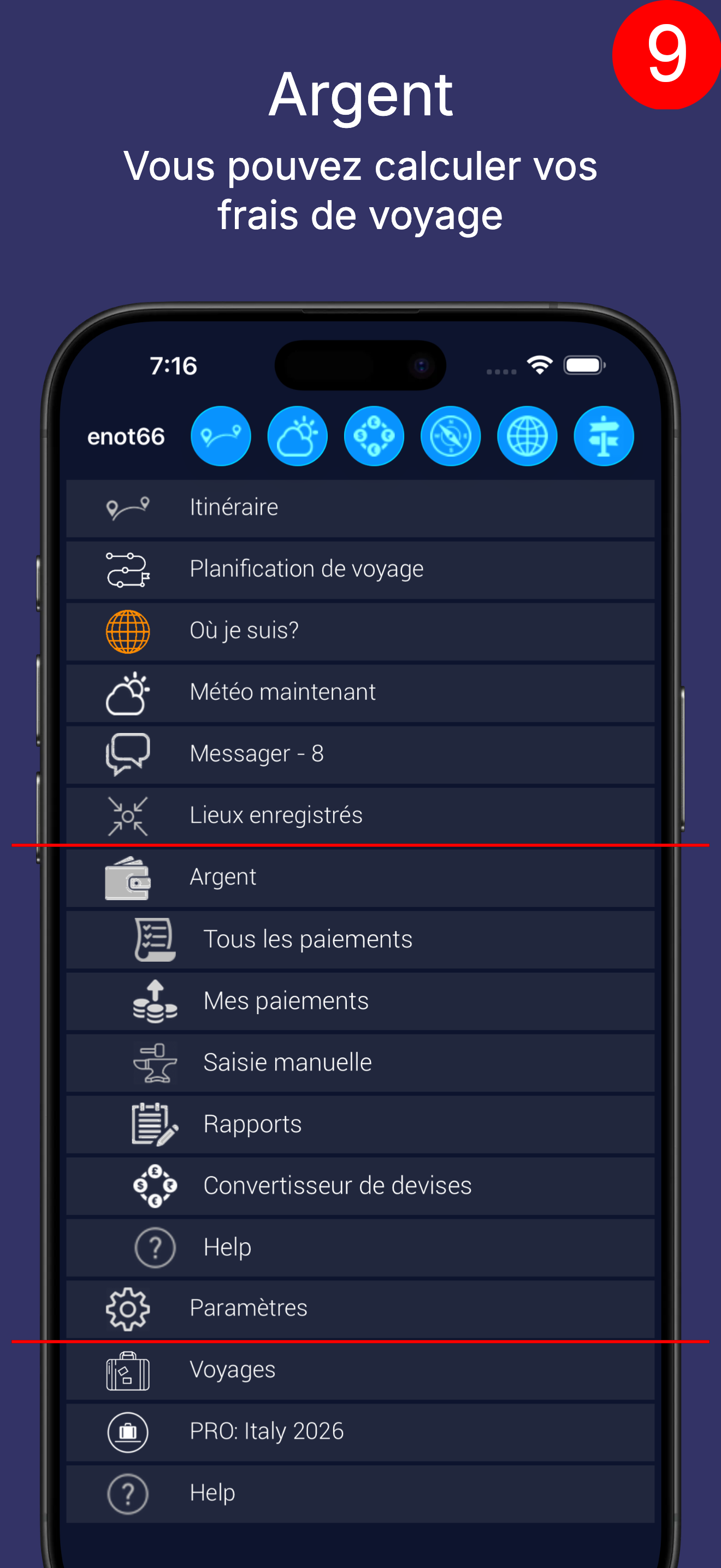 Vous pouvez suivre l'argent dépensé pendant le voyage.