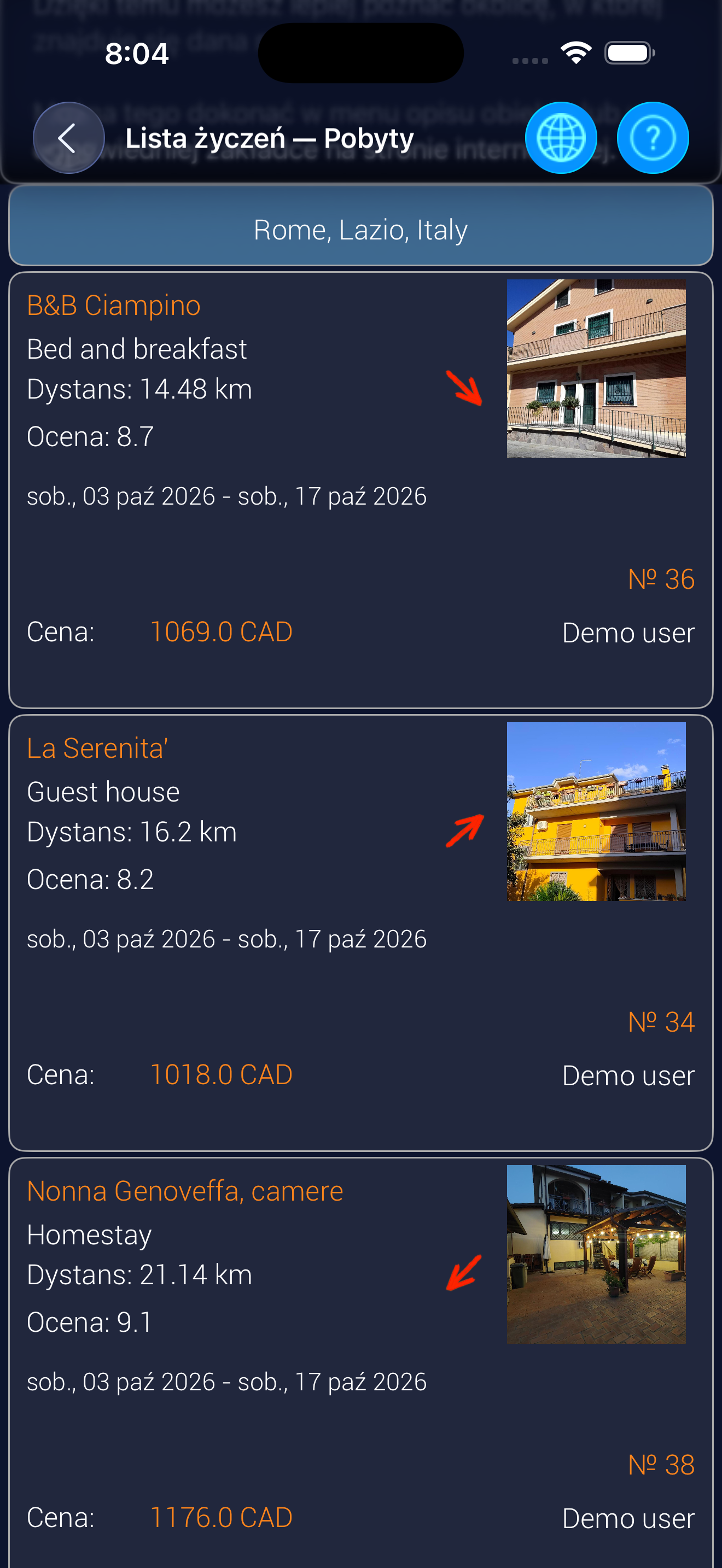Jeśli zmienisz jakikolwiek parametr zapytania (nie filtr lub sortowanie) - na przykład Rzym zamiast Brampton, lub zmienisz daty, lub liczbę gości, enot66 utworzy nowe zapytanie, które również pojawi się na liście.