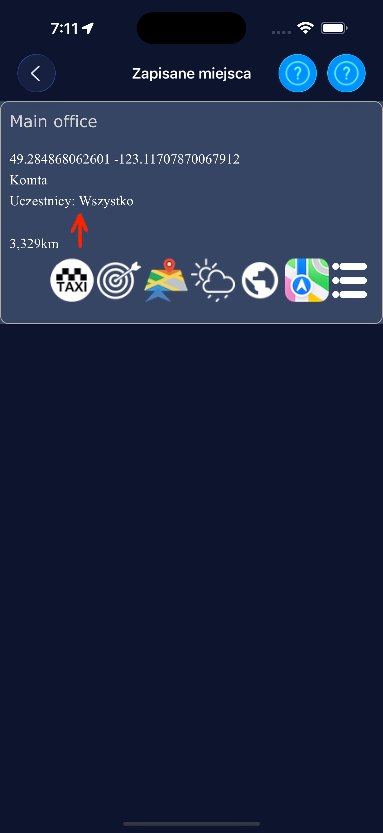 Na przykład musisz się spotkać za kilka godzin na dworcu autobusowym, na który właśnie przyjechałeś. Jedna osoba dodaje miejsce i wszyscy uczestnicy podróży otrzymują ten sam punkt spotkania.