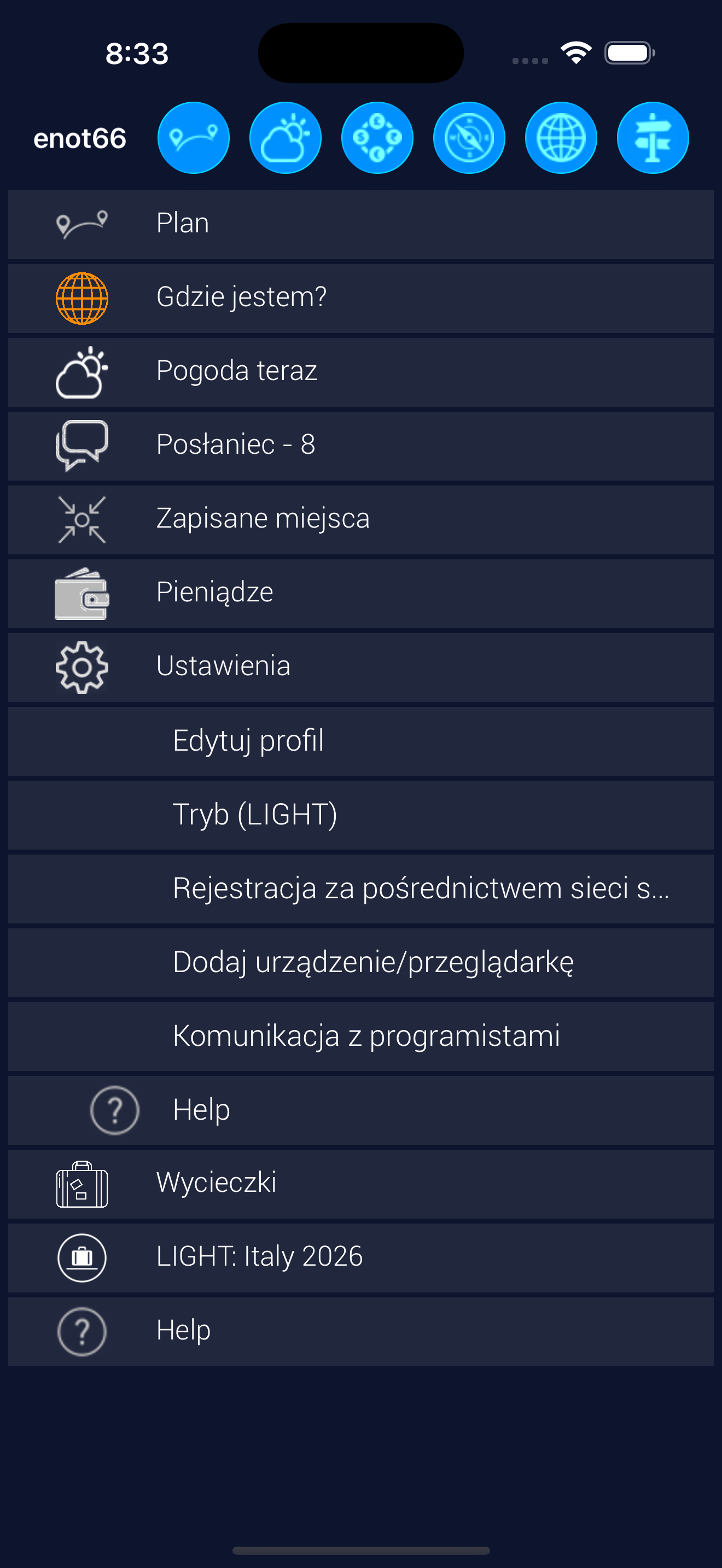 Możesz tworzyć nowe podróże.