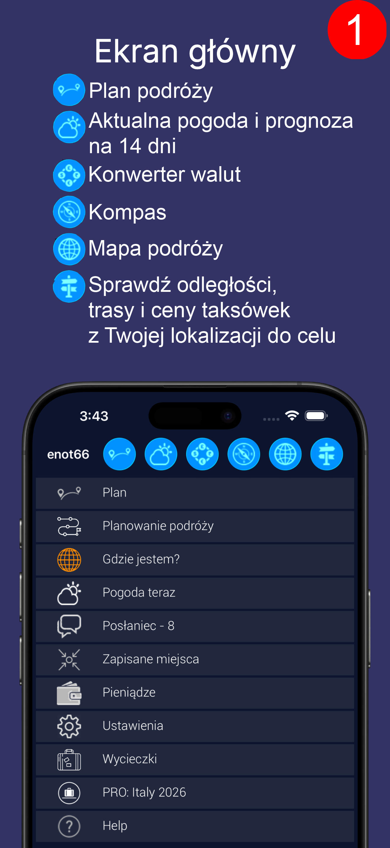 Tryb pracy aplikacji PRO dodaje możliwość planowania podróży.