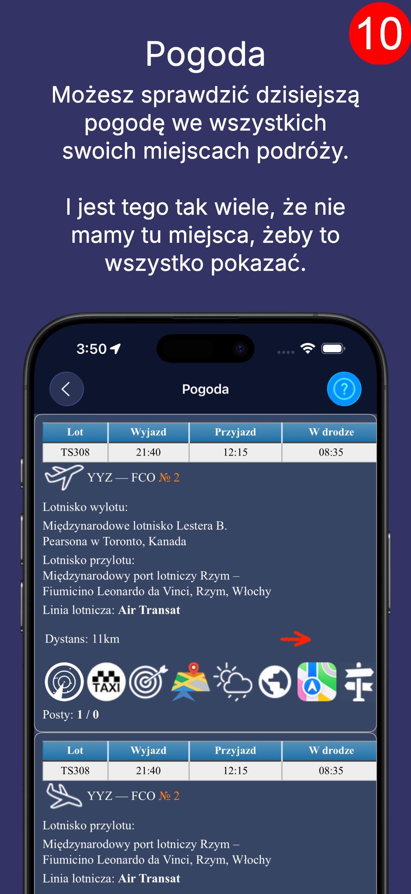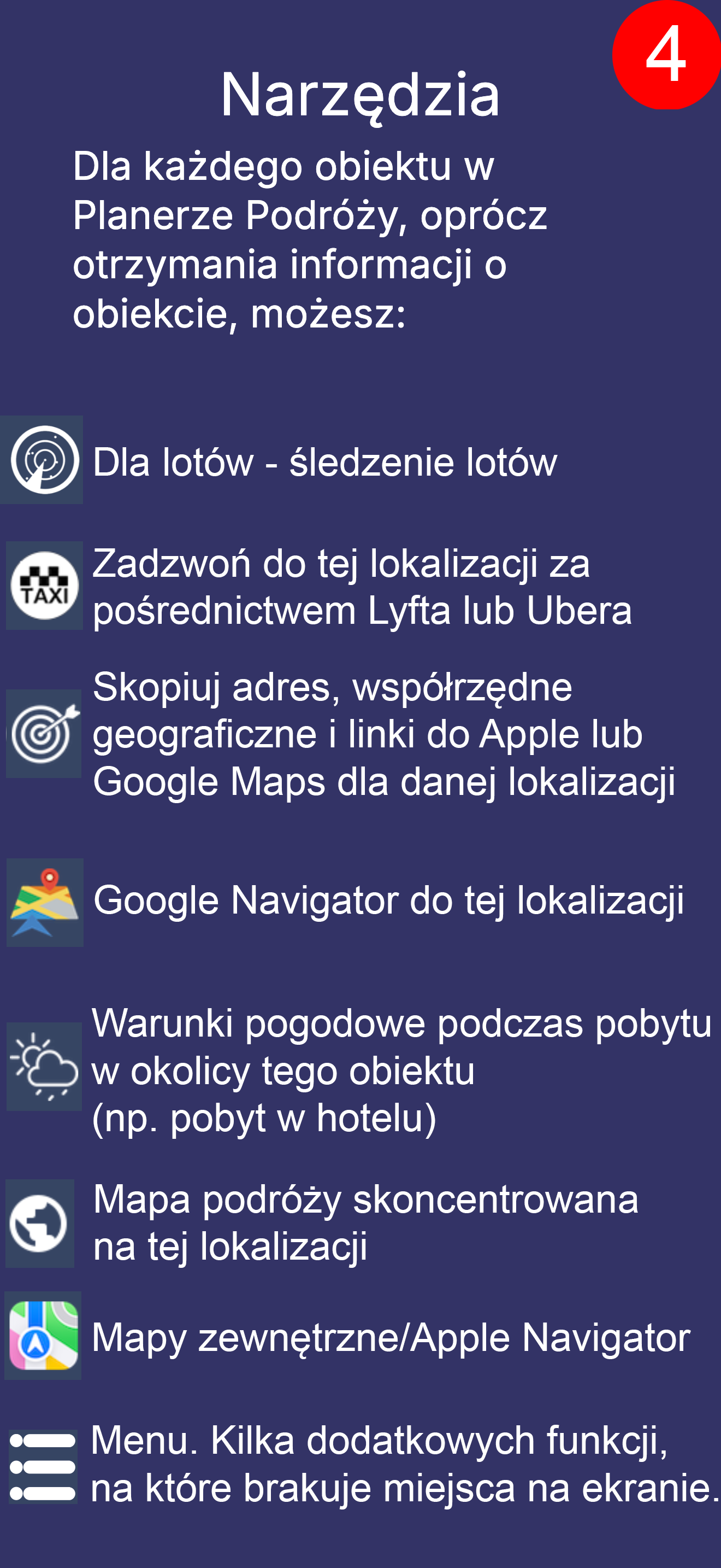 To jest tylko ekran przeglądania planu podróży, co stanowi jedynie niewielką część możliwości aplikacji.