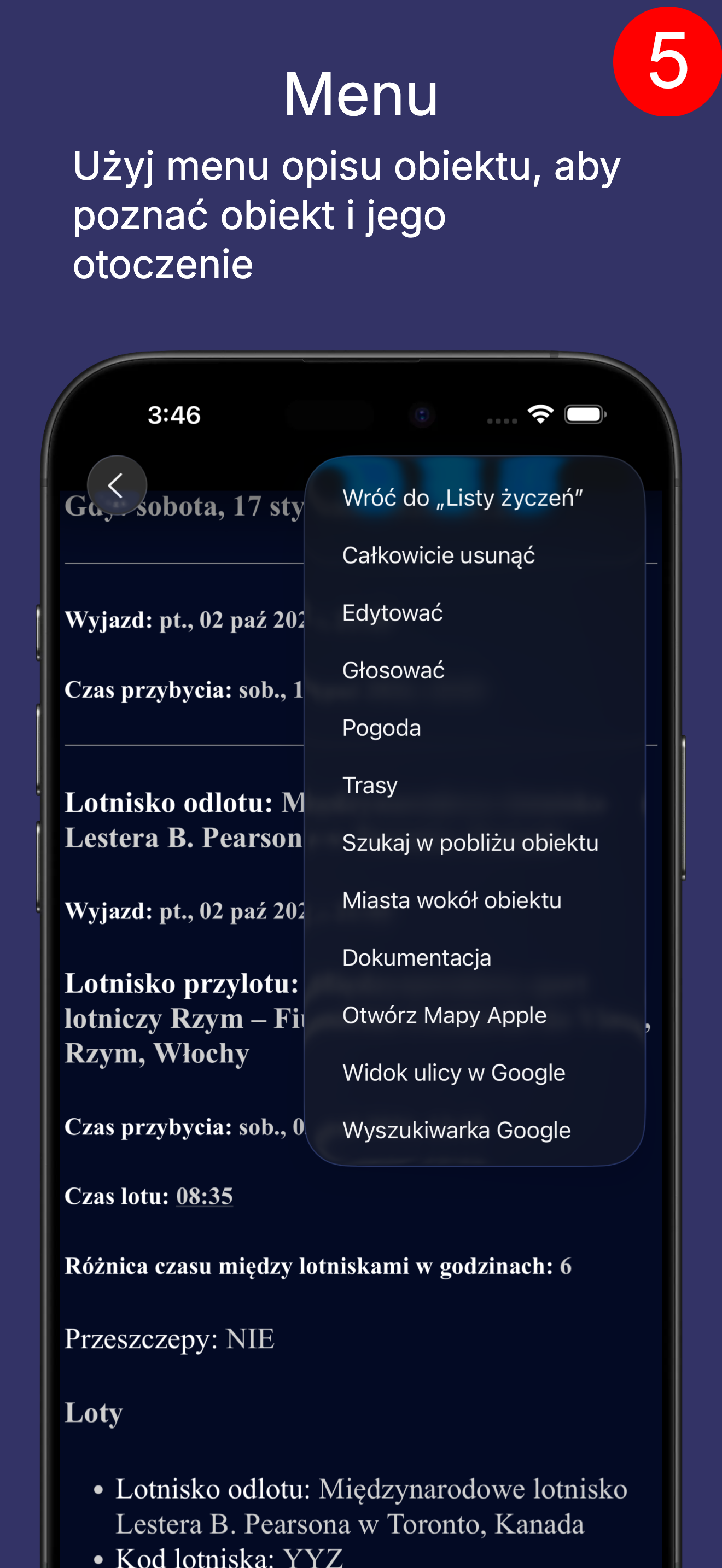 Jeśli tego nie potrzebujesz, na ekranie planu podróży (poniżej) dotknij lotu, na ekranie opisu lotu wybierz z menu „Edytuj" i ustaw uczestników lotu.