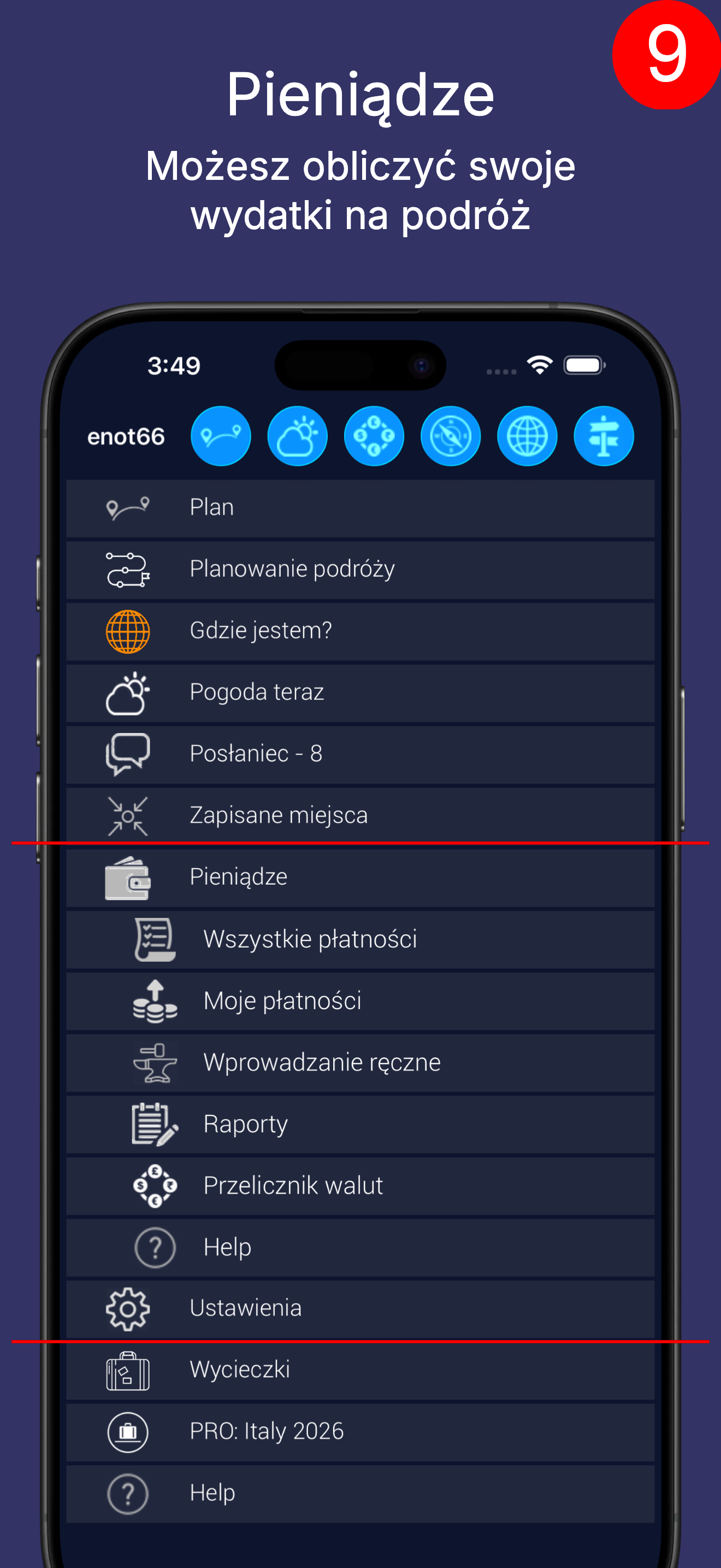Możesz śledzić pieniądze wydane podczas podróży.