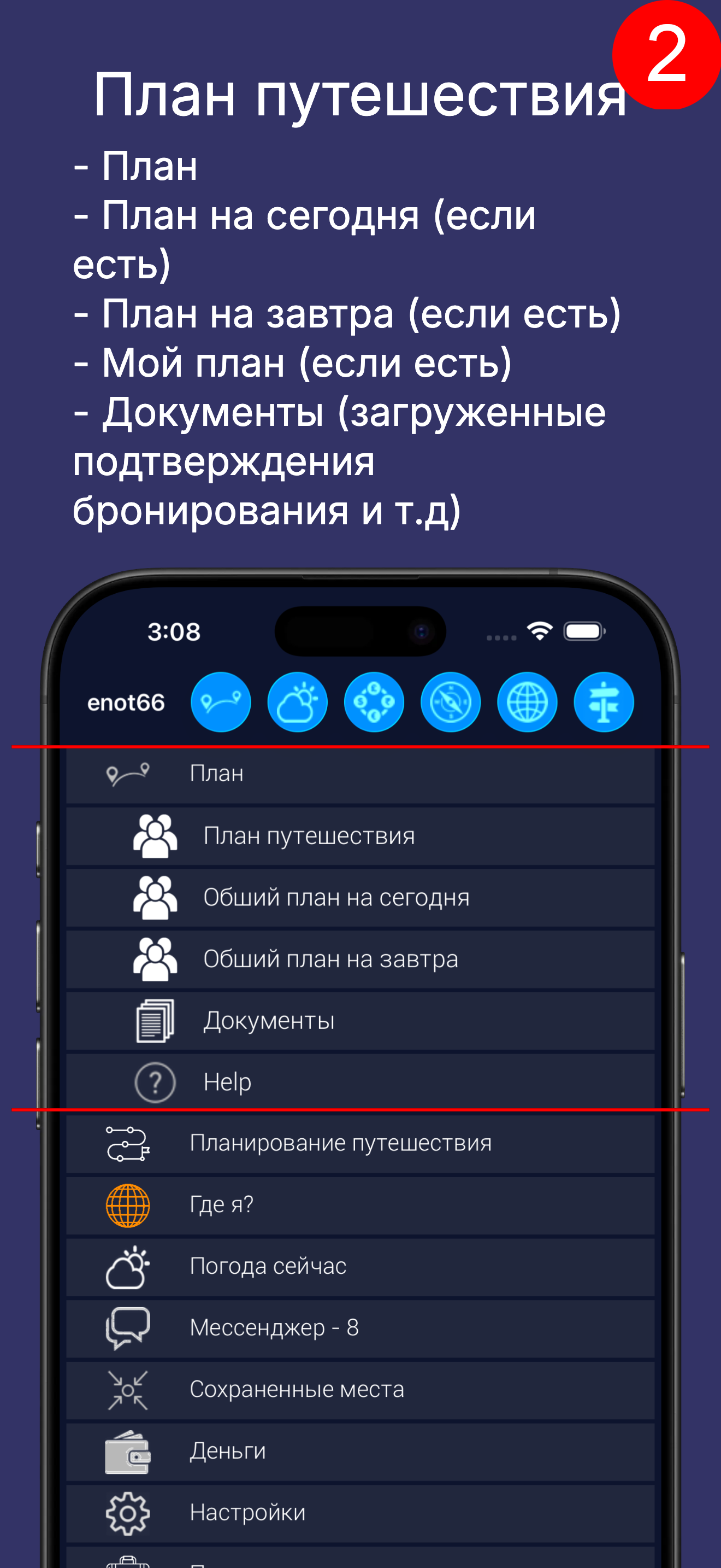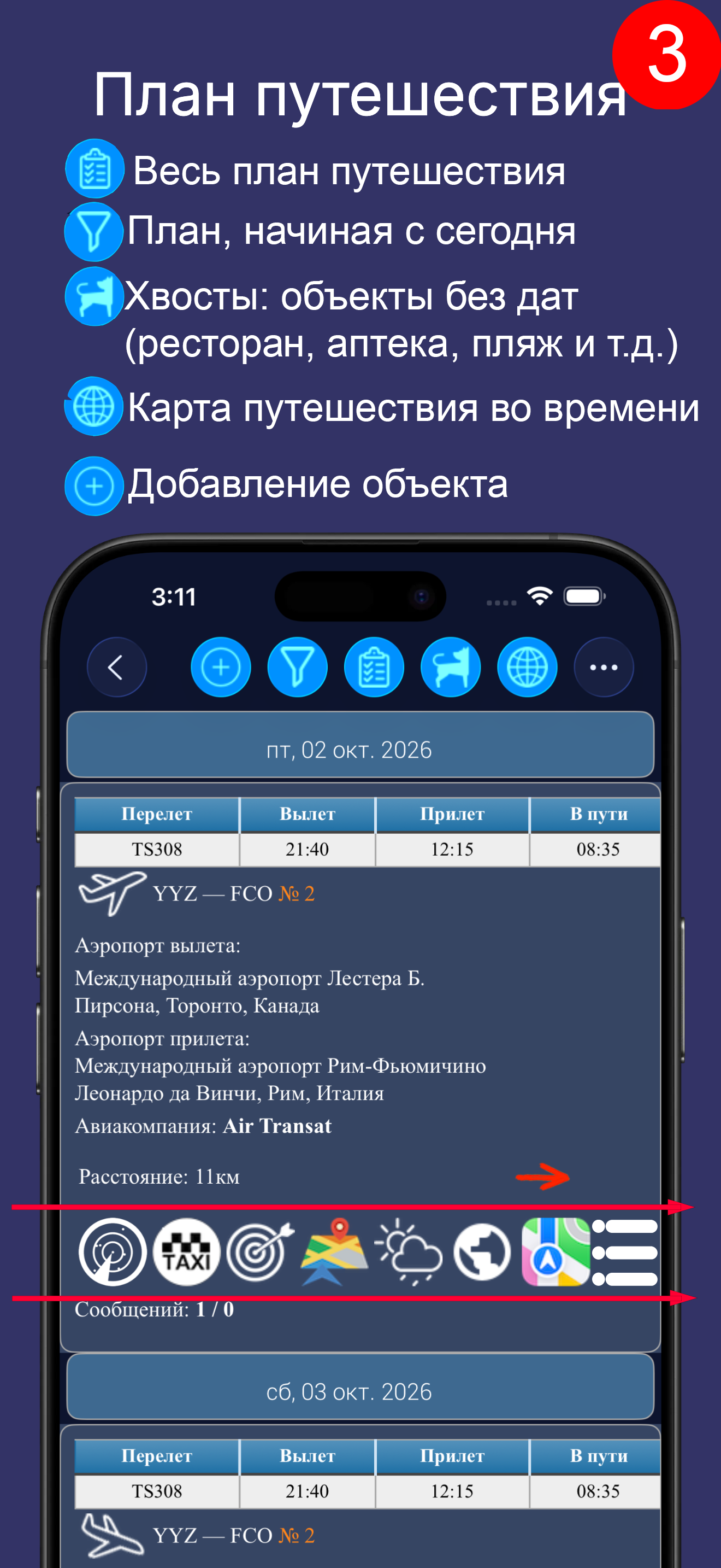 Это всего лишь экран просмотра плана путешествия, что составляет лишь небольшую часть возможностей приложения.