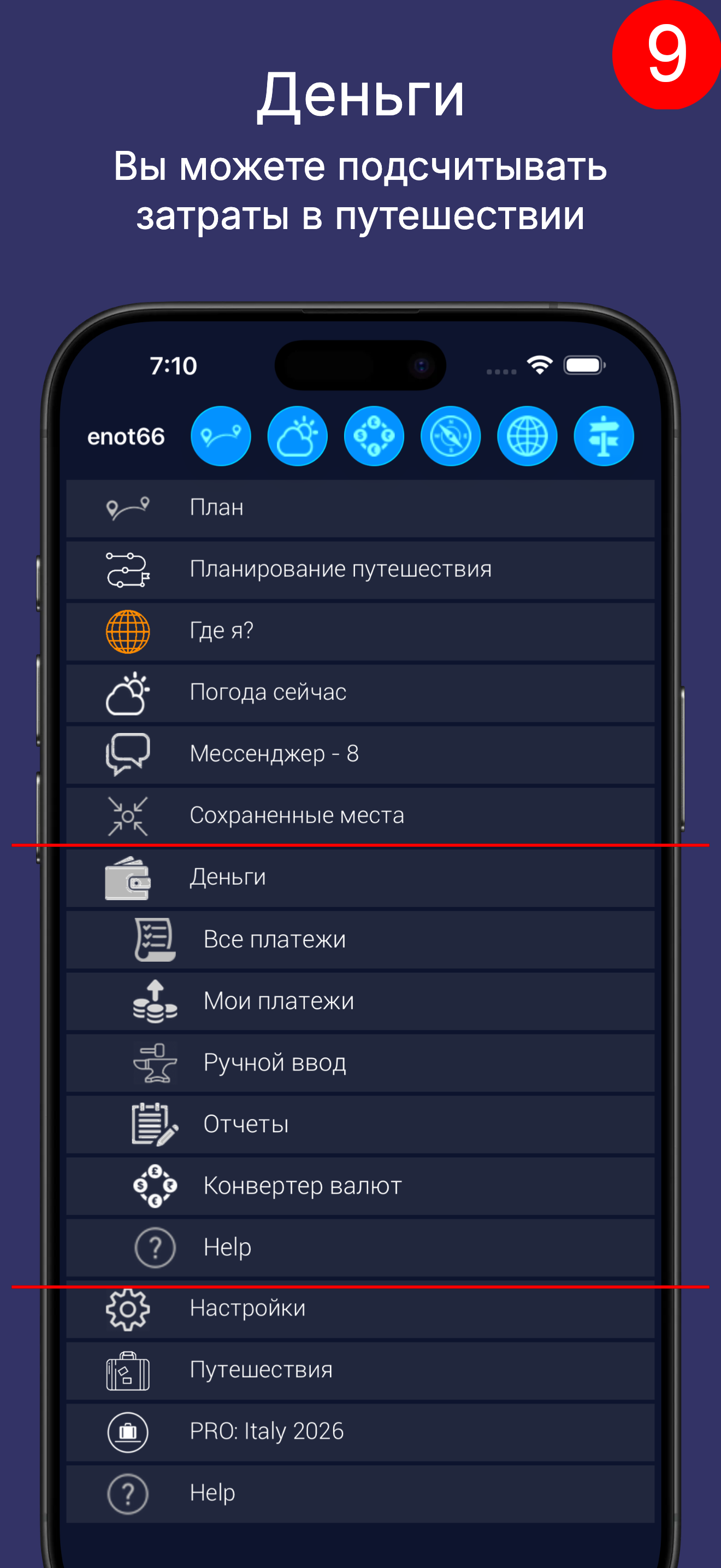 Вы можете вести подсчет денег, потраченных в путешествии.
