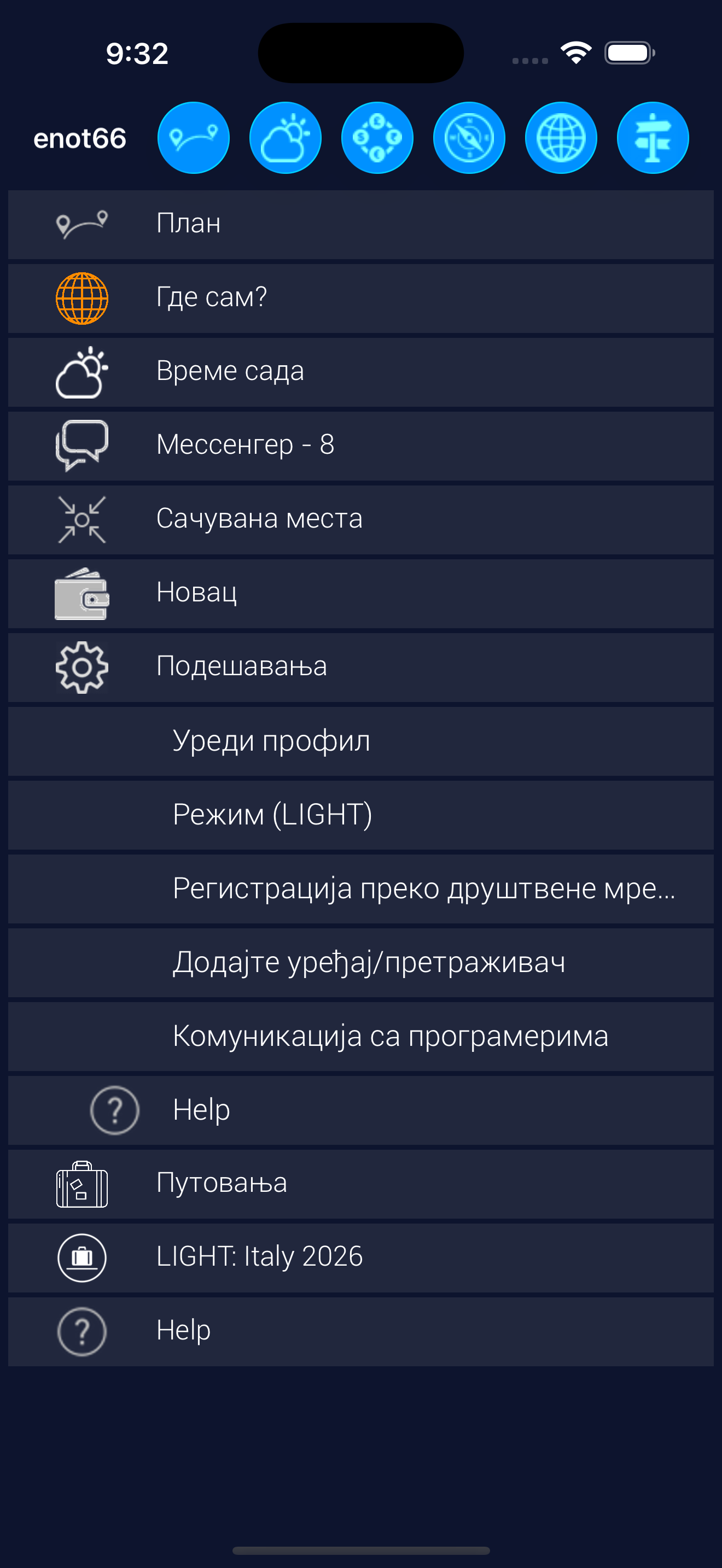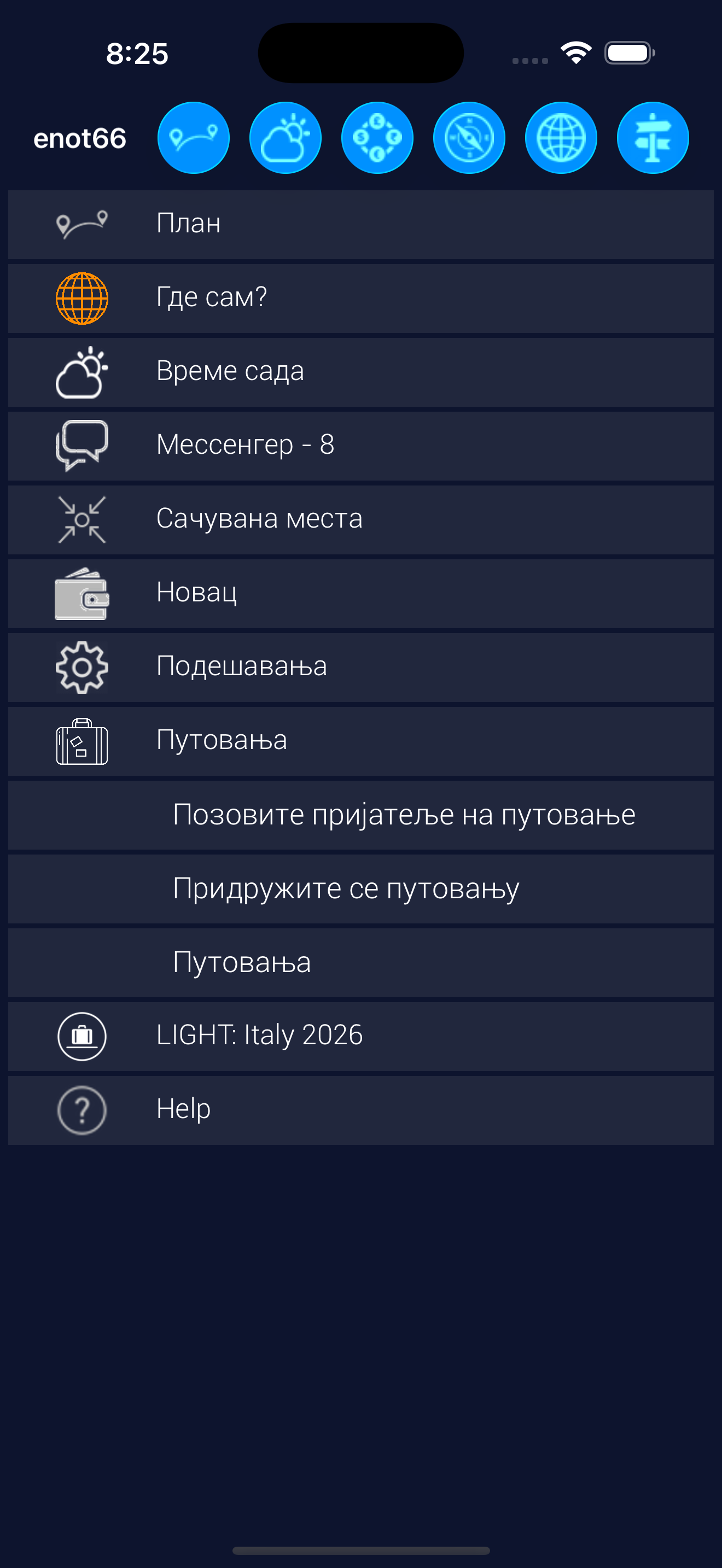 | Мапа путовања центрирана на вашу тренутну локацију. Мапа помаже да разумете географију свог путовања. | |