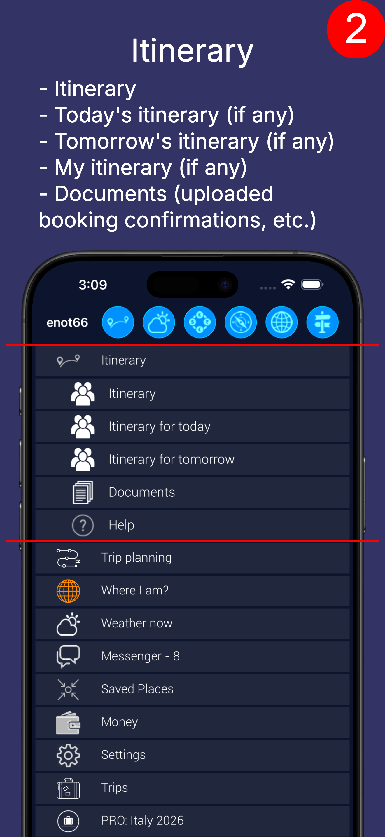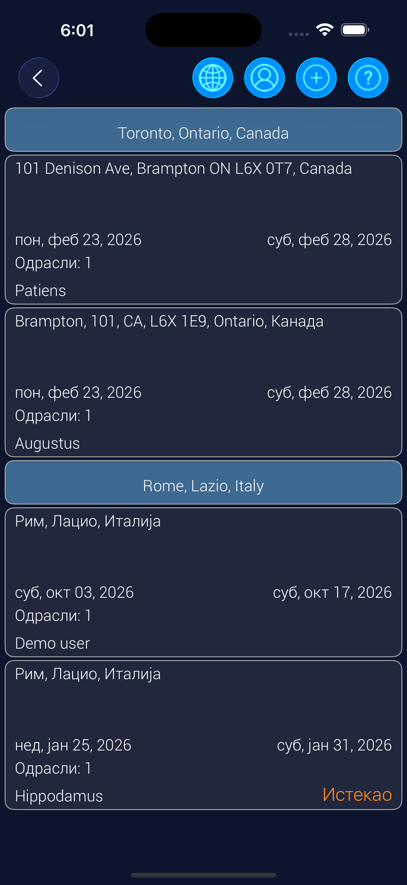 Можете прегледати цео план, план за данас, за сутра, персоналне планове (ако постоје). И документе, ако сте их учитали (на пример, потврде резервација).