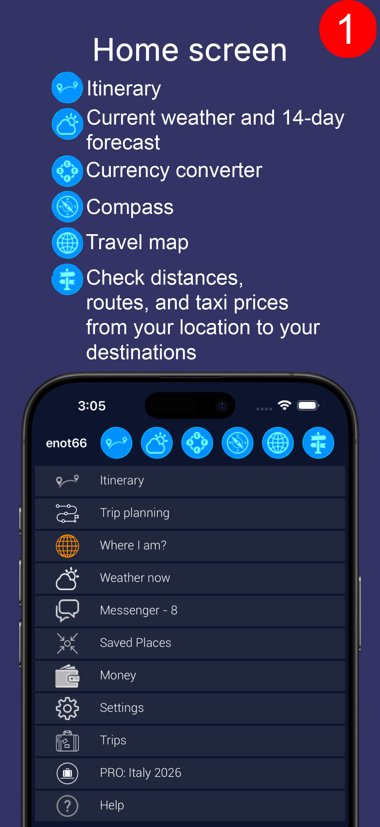 Мапа путовања. Ово помаже да визуализујете географију свог путовања, међусобне положаје објеката путовања и растојања. |
