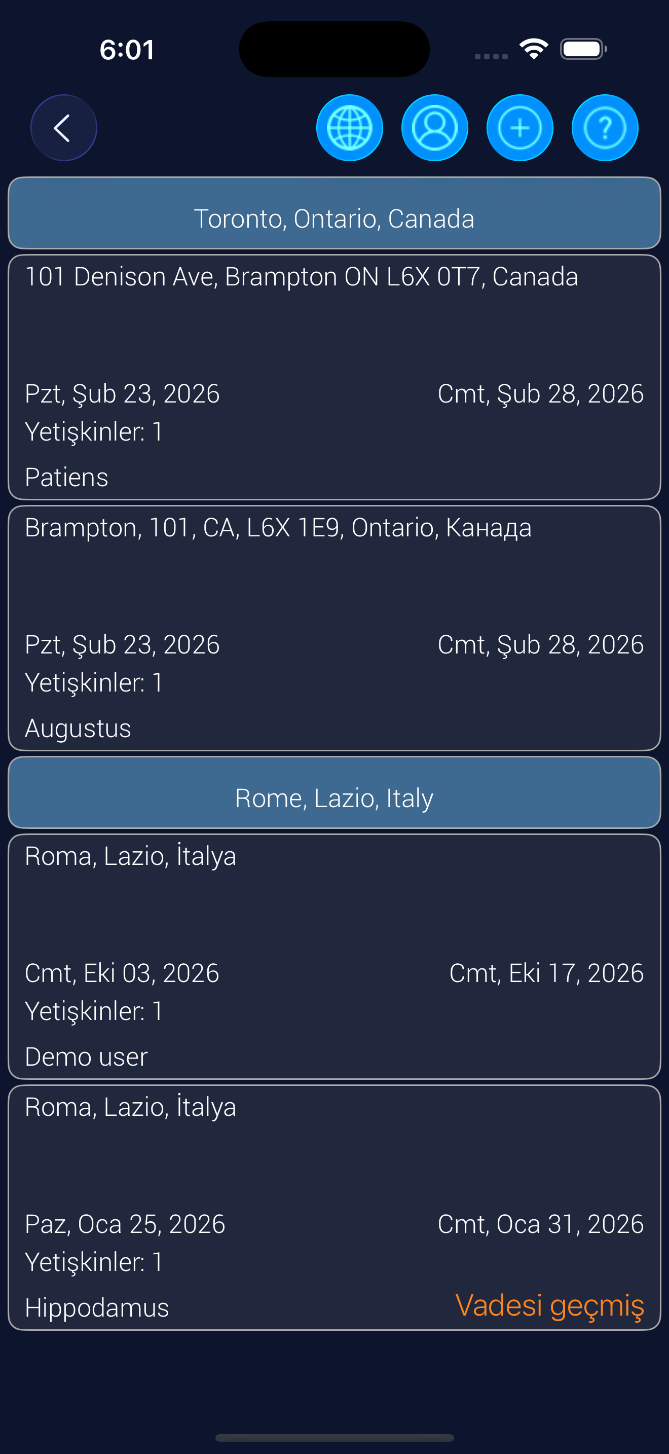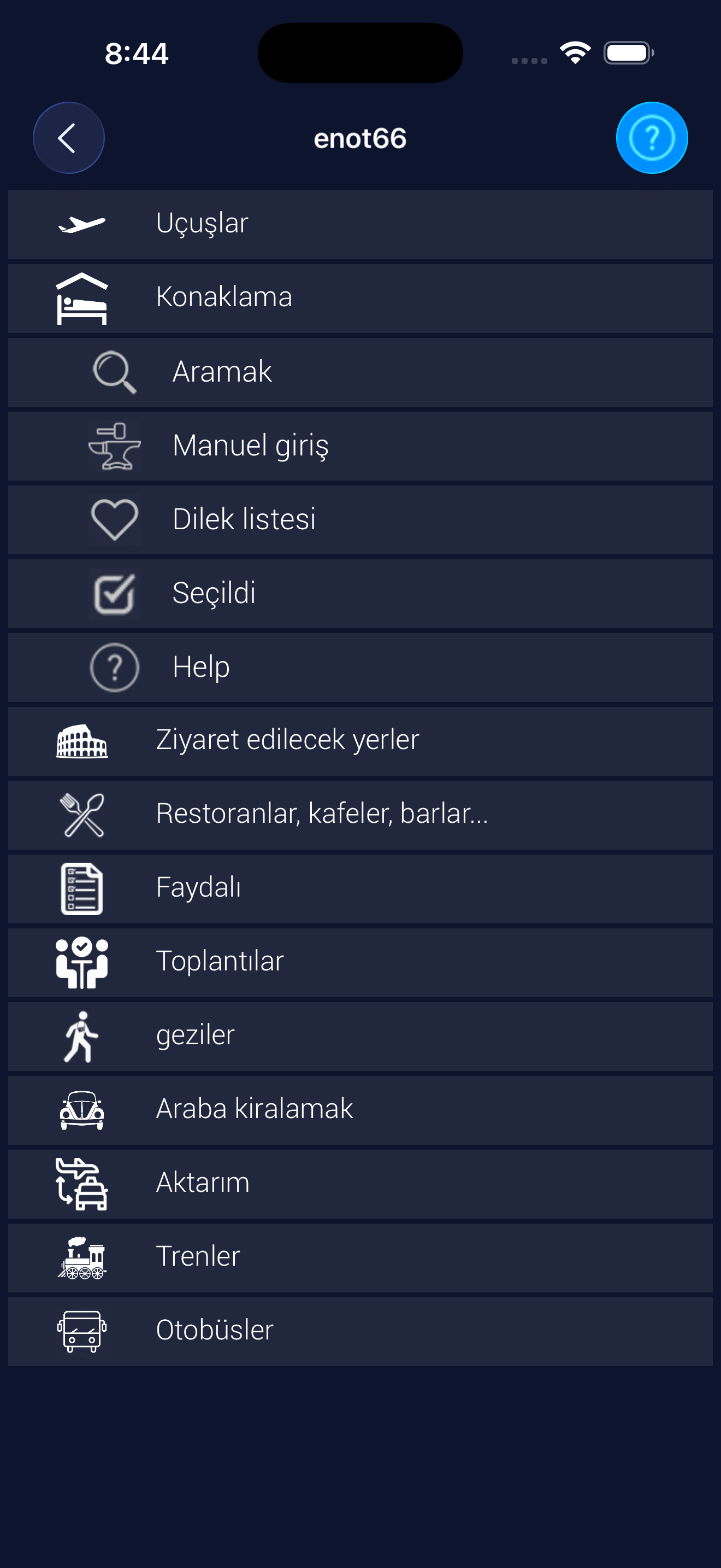 Bunlar rezerve ettiğiniz (örneğin, uçuş) veya ziyaret etmek için seçtiğiniz (örneğin, restoran, turistik yer) nesnelerdir. "İstek Listesi" ile aynı görünür.