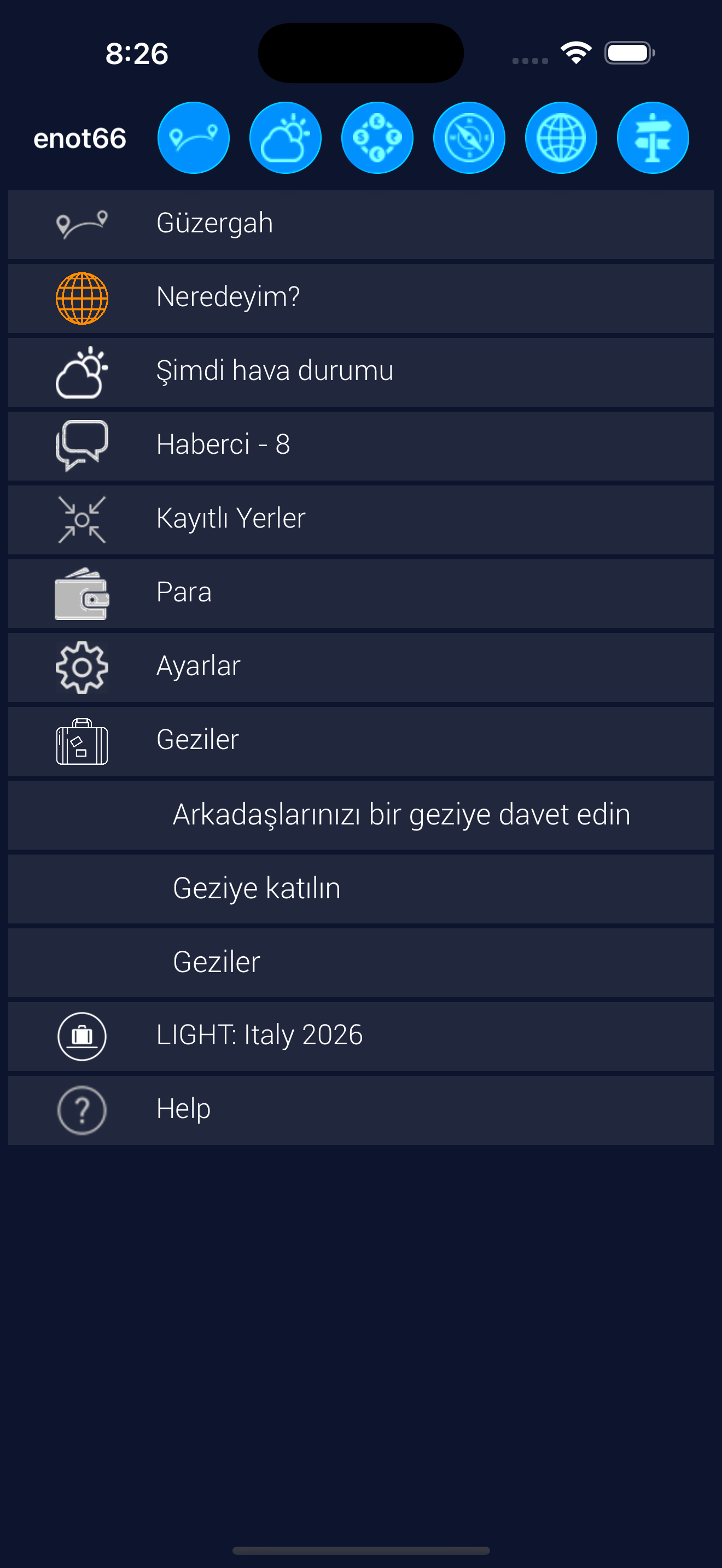 Seyahat nesnesi menüsünde Light sürümünde açıklanmayan bir öğe daha vardır.