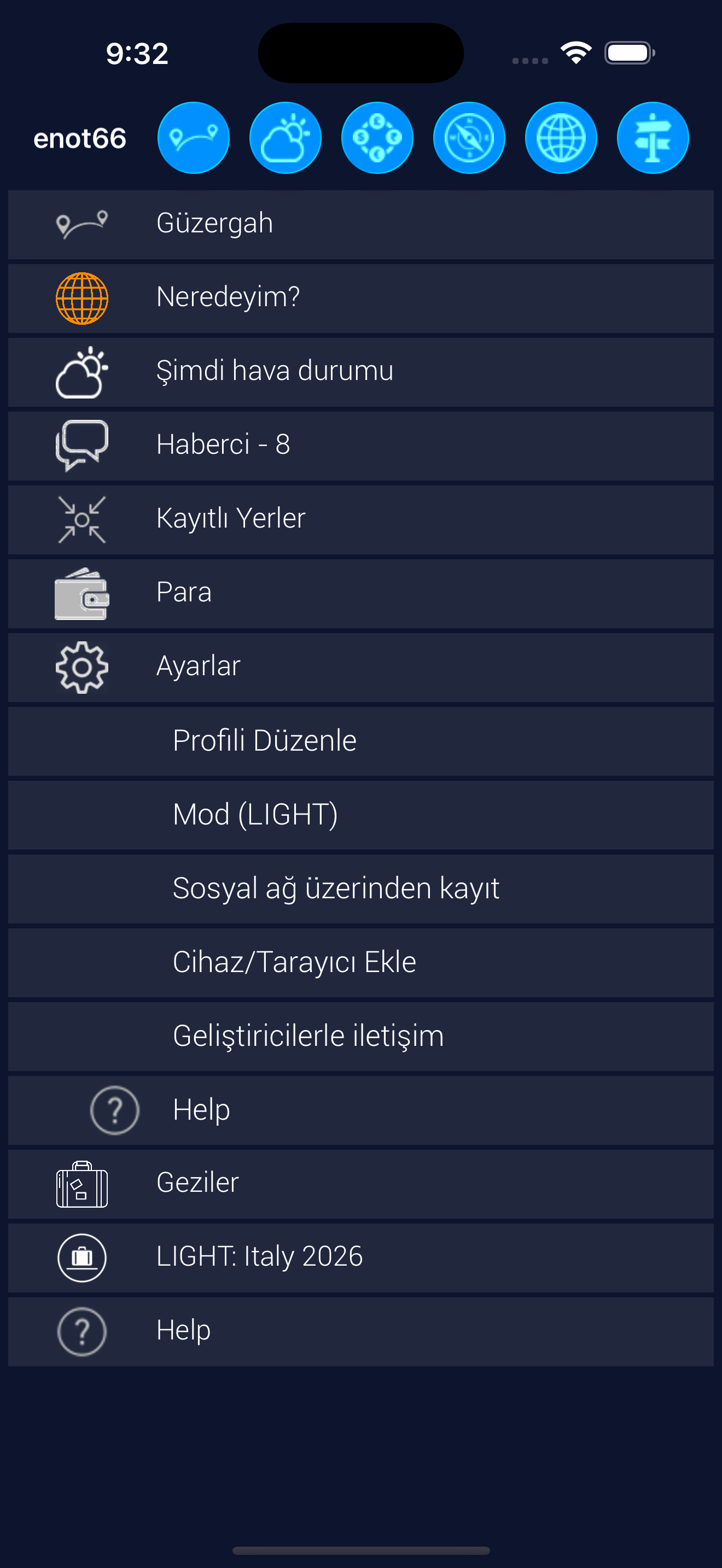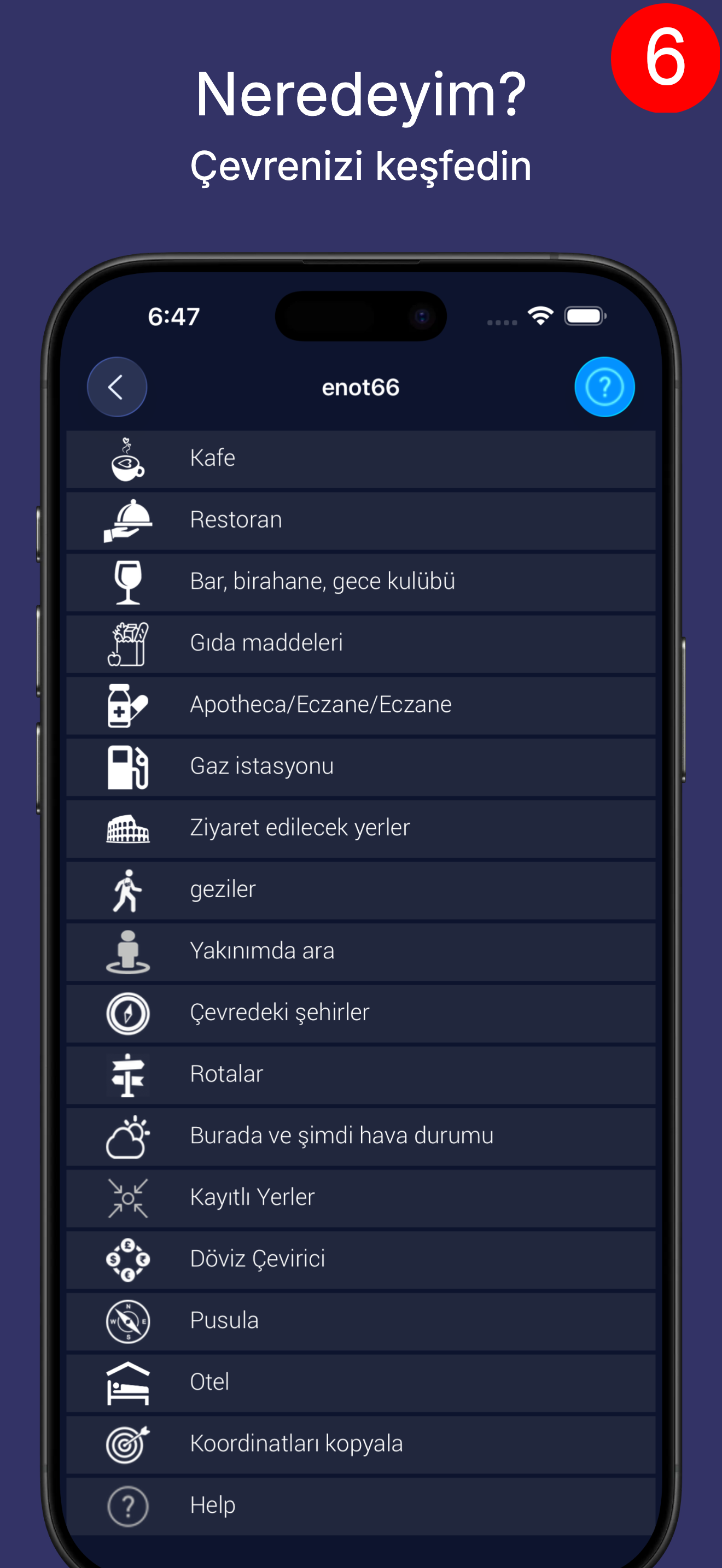 Seyahat sırasında ihtiyaç duyabileceğiniz yerleri kaydedebilirsiniz.