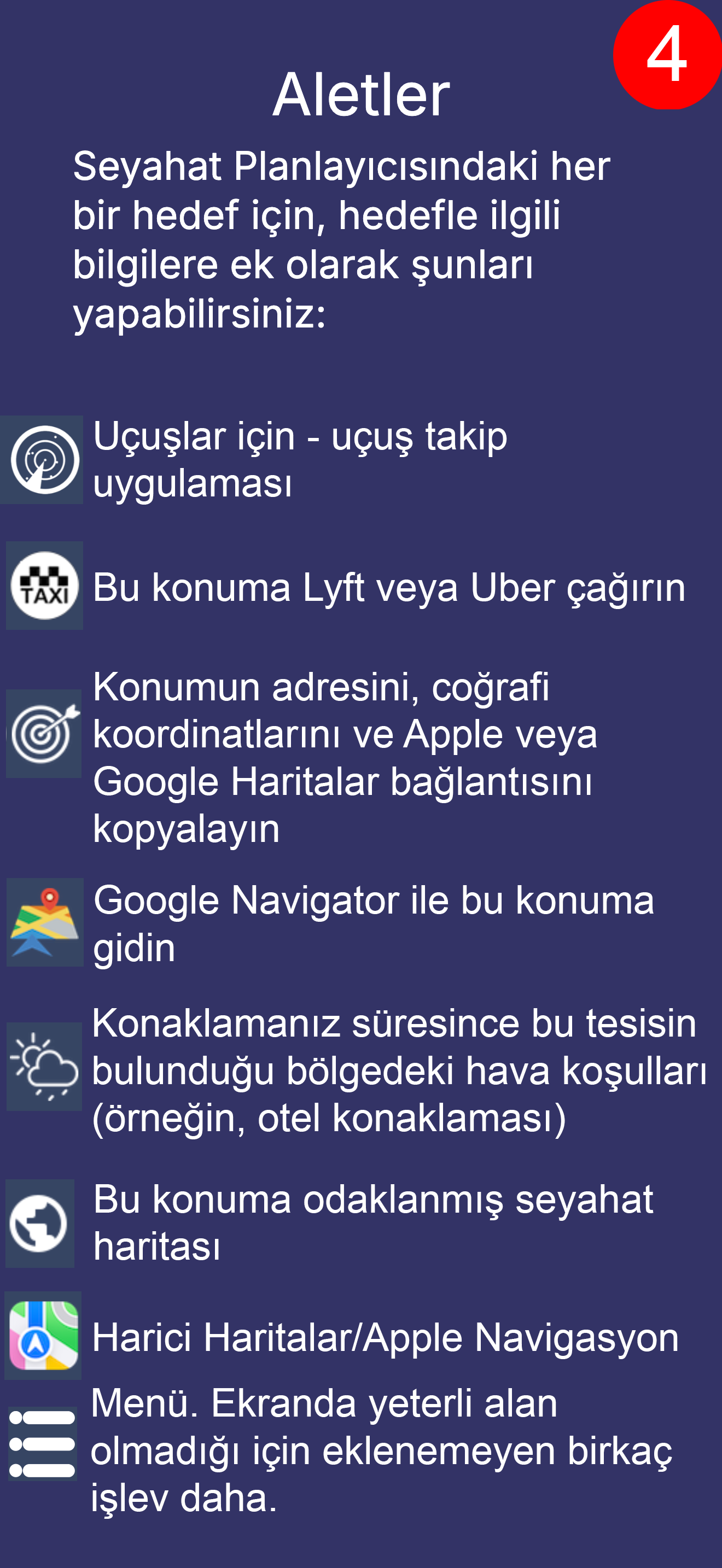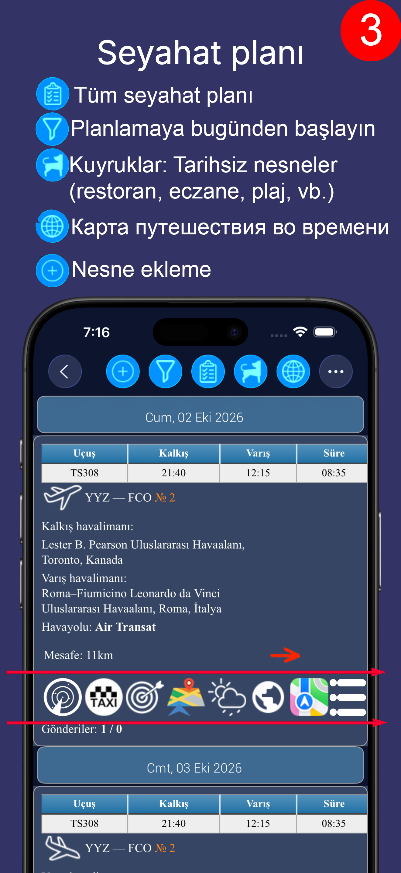 Bu yalnızca seyahat planı görüntüleme ekranıdır ve uygulamanın olanaklarının yalnızca küçük bir bölümünü oluşturur.