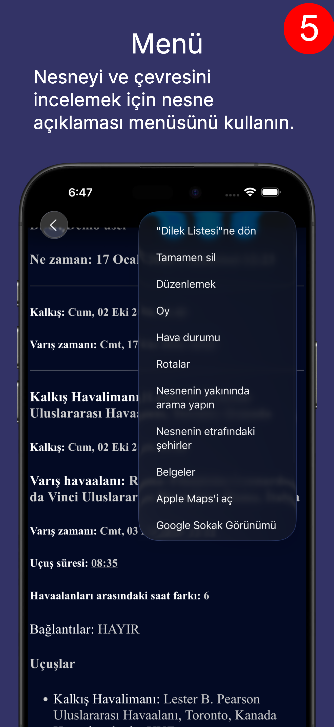 Uçuş aktarmalarını göster (menüde). |