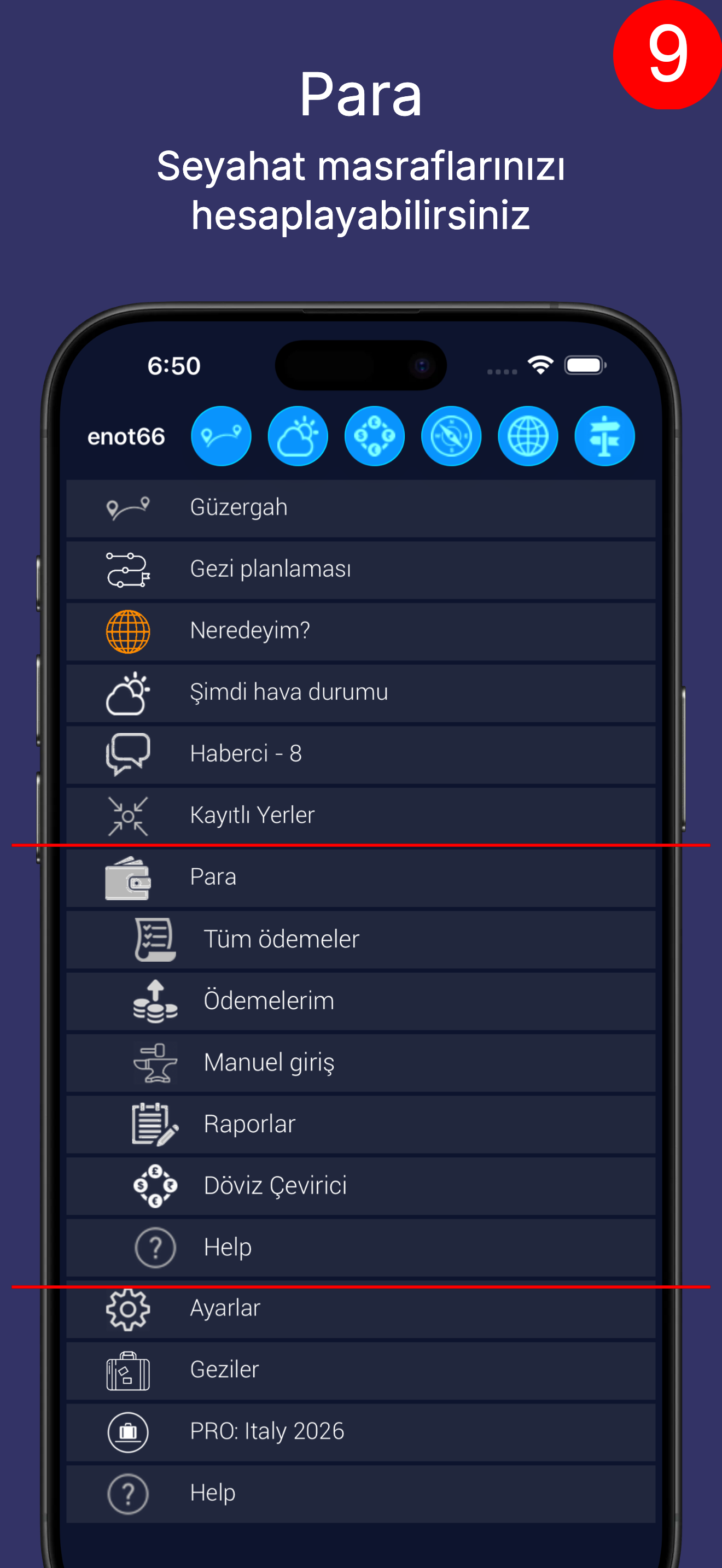 Seyahat sırasında harcanan parayı takip edebilirsiniz.